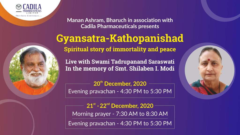 Cadila Pharmaceuticals and Manan Ashram, Bharuch presents Gyansatra-Kathopanishad.